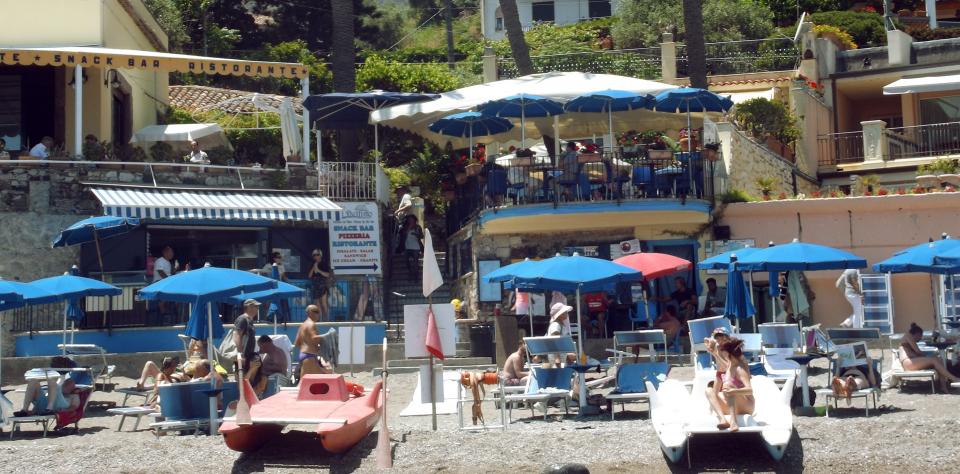 The Lido Il Delfino is located on the enchanting bay of Mazzarò, surrounded by green palm trees surrounded by the bright colors of bougainvillea and hibiscus, with large terraces used as a restaurant and snack bar.