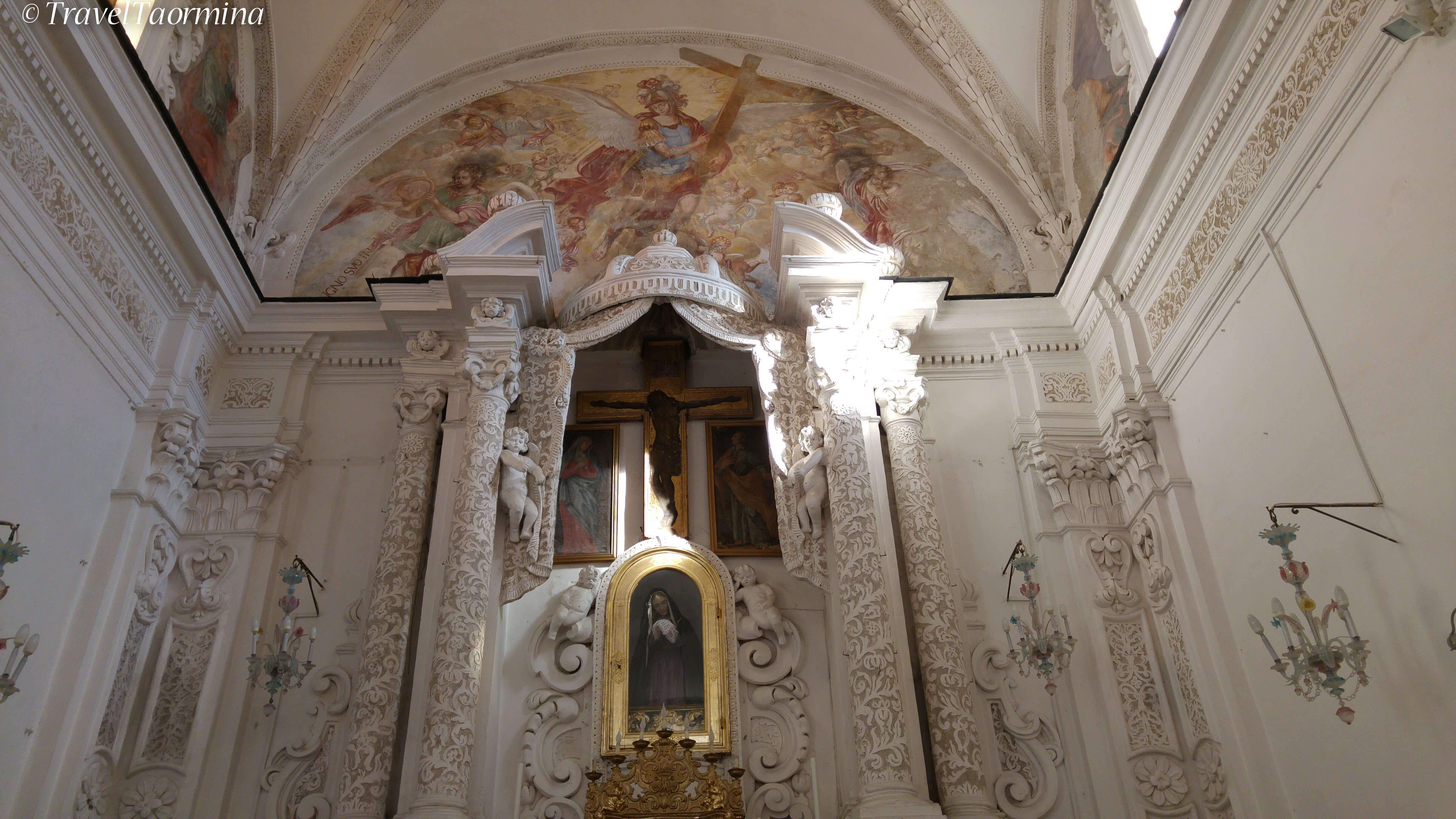 In the back of the church there is an ancient crypt, perhaps from the early years of Christianity, which you have to cross to reach the stage where is situated the church organ. If the crypt really dates from that time, we must consider the Church of Varò as the oldest church in Taormina.