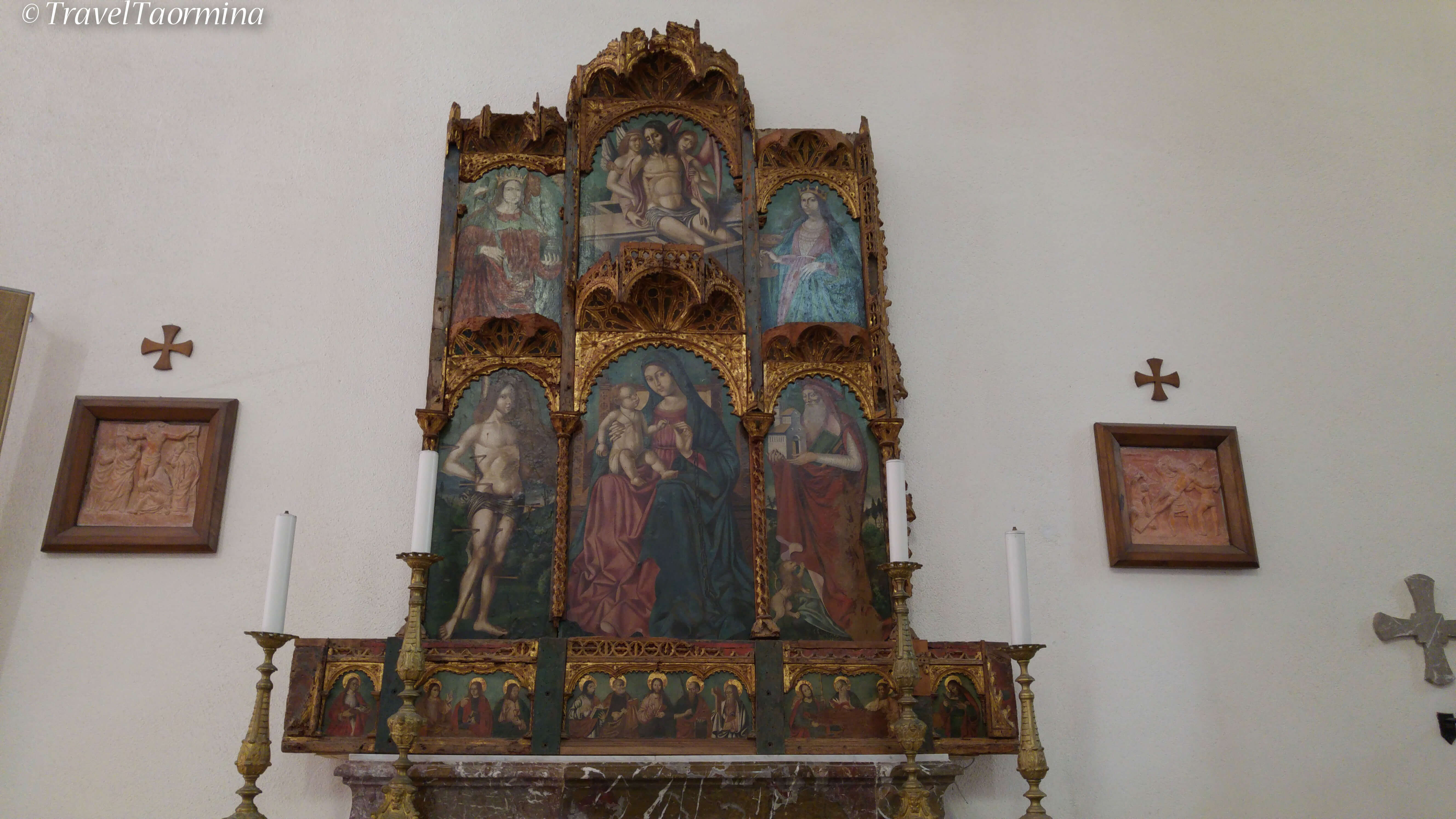 In the right nave there is the Visitation of the Virgin Mary with Saints Joseph and Zechariah, painted by Antonino Giuffré in 1463.