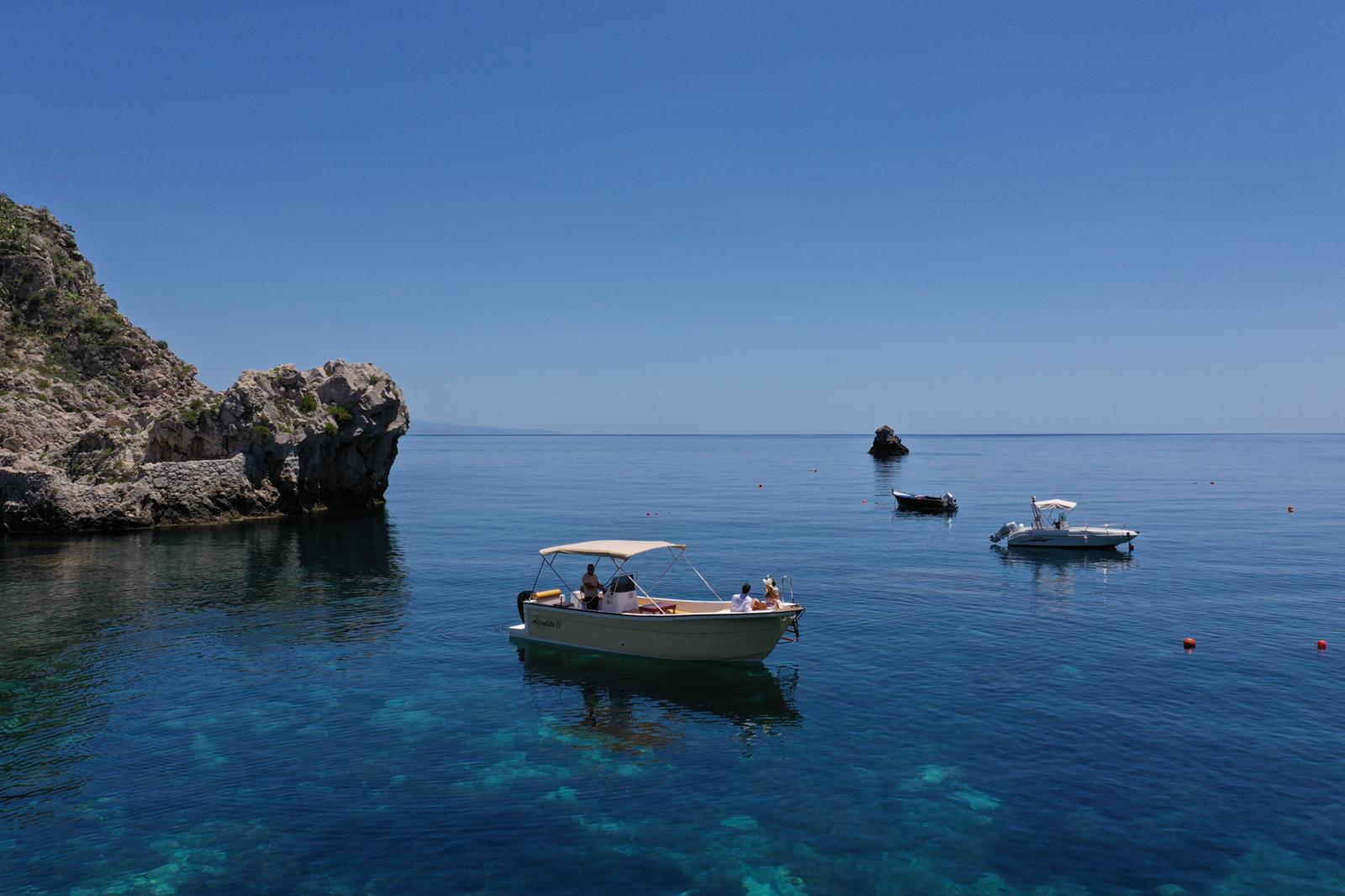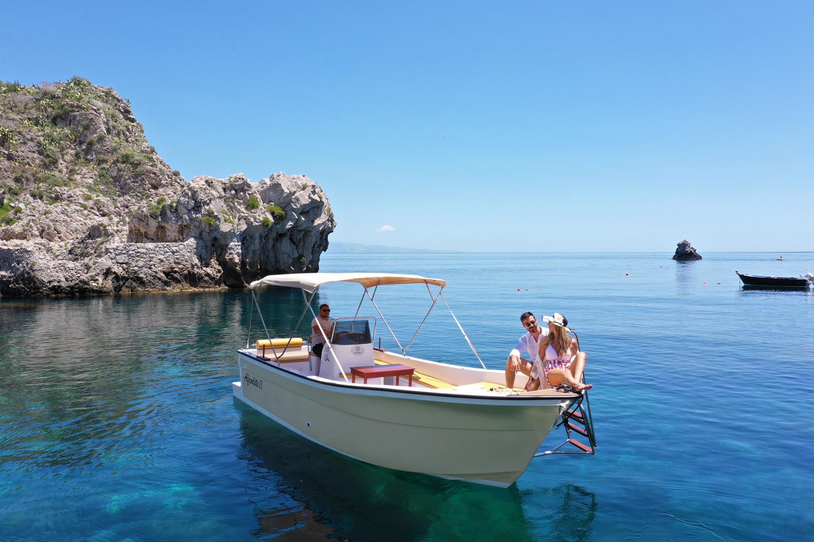 Private Boat Tour in Taormina with departure from the enchanting bay of Mazzarò. From here, with comfortable, safe and beautiful boats, you can enjoy amazing excursions in the jonian coast.